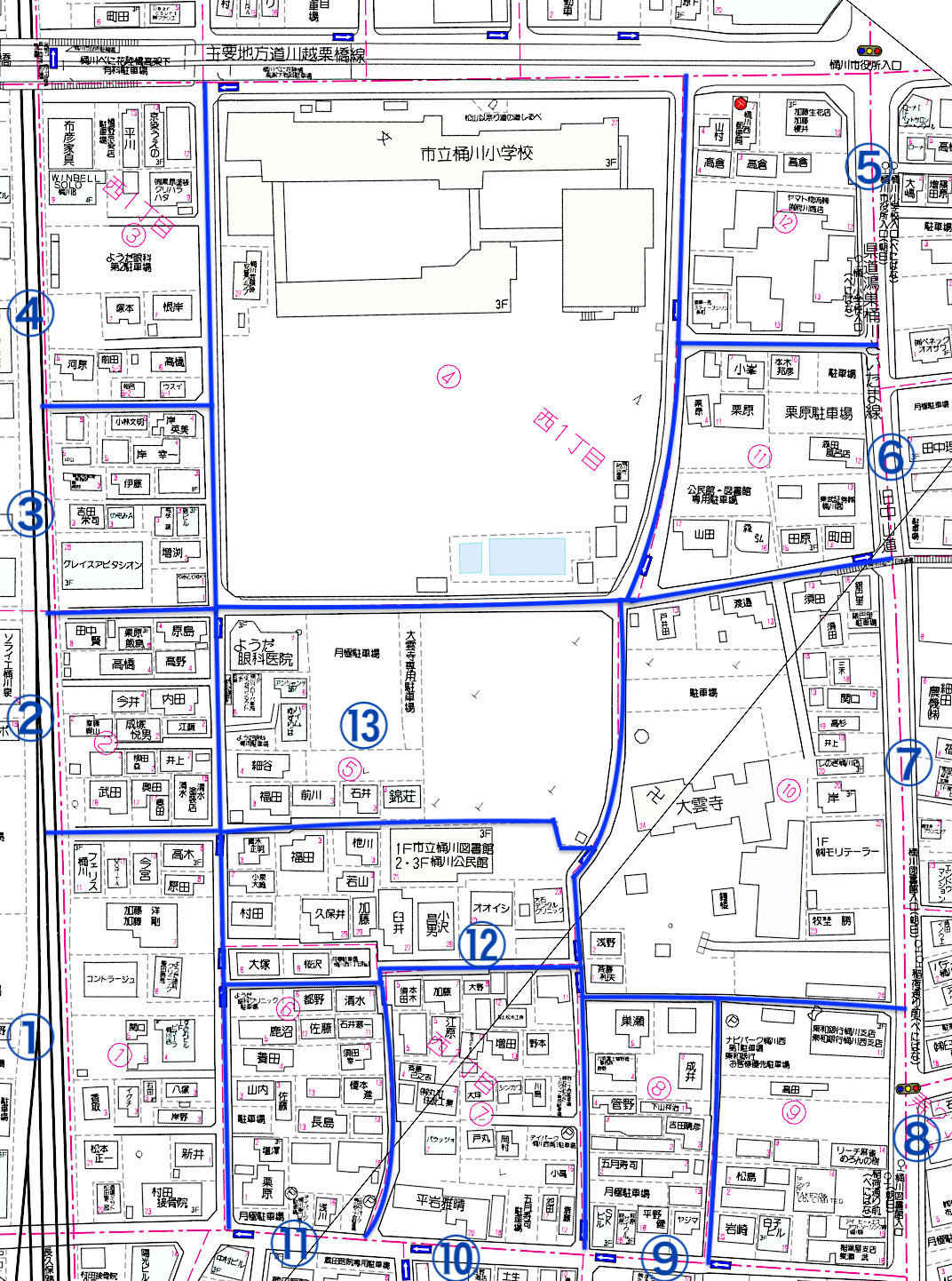 西一丁目町内には桶川小学校、桶川市立図書館があり地域文化の拠点として機能しています。